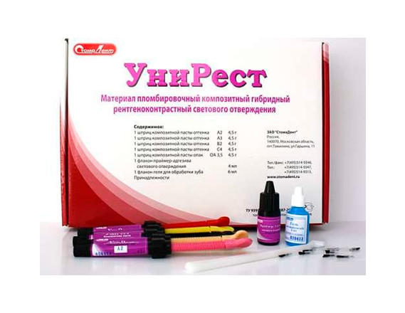 УниРест - пломбиров. мат-л 5шпр.*4.5г, гель травления 6мл., адгезив 4мл СтомаДент