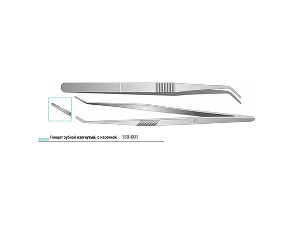 Пинцет зубной изогнутый с насечкой 15 см СТРУМ 150-001