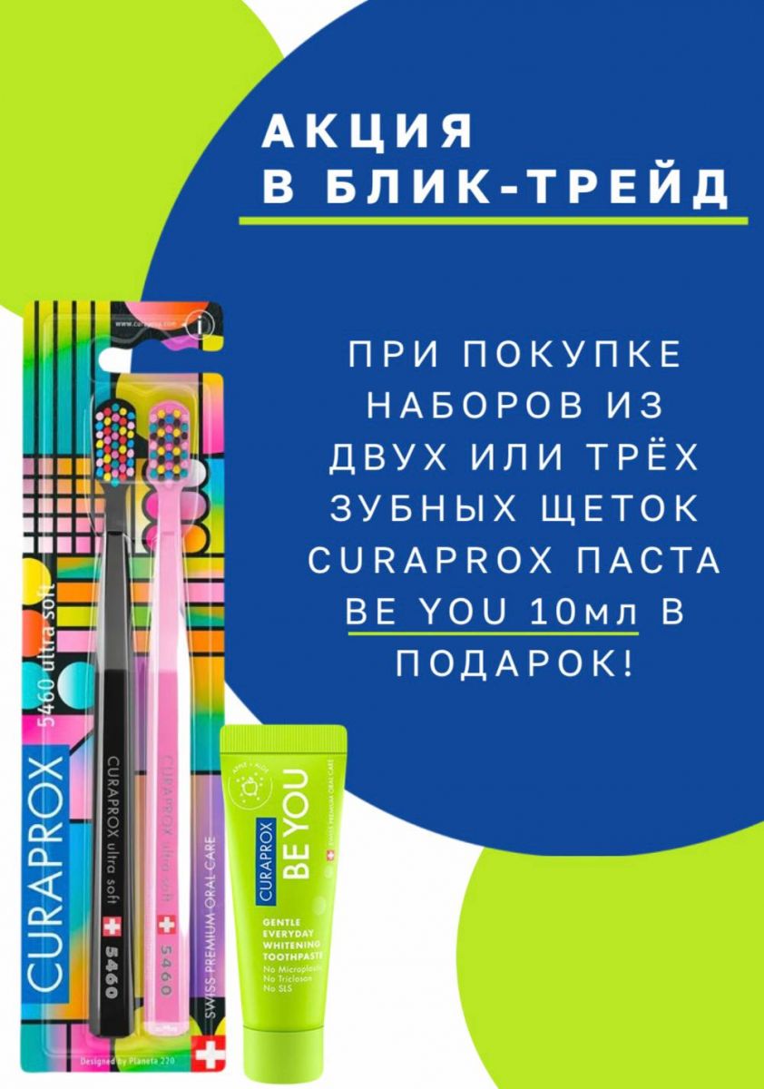 Акция в БЛИК-ТРЕЙД! При покупке наборов из двух или трёх зубных щеток CURAPROX паста BE YOU 10мл В ПОДАРОК!